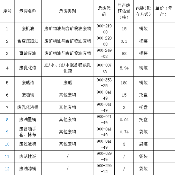 2、招标内容:危废处理