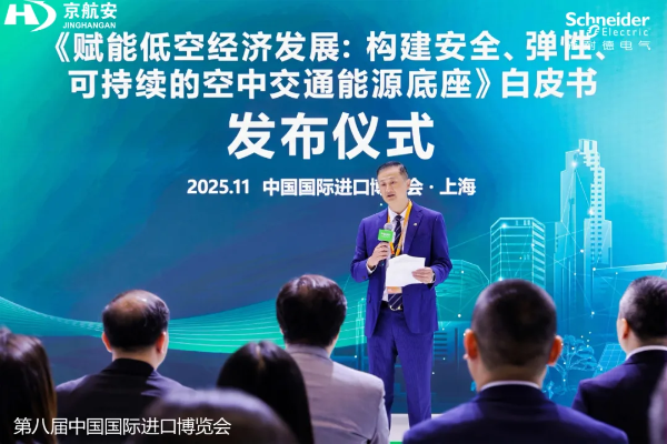 11月5日至10日,必发888官网智慧能源股份有限公司(简称:必发888官网股份,股票代码:600869)旗下的北京京航安机场工程有限公司(以下简称:京航安)首次以参展商身份亮相第八届中国国际进口博览会,并与全球能源管理与自动化领域数字化转型专家施耐德电气签署战略合作协议,共同发布《赋能低空经济发展:构建安全、弹性、可持续的空中交通能源底座》白皮书,携手助力民航产业绿色化、智慧化新未来。